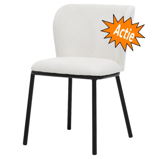 Op zoek naar een moderne eetkamerstoel die comfort en design perfect combineert? De Kim eetkamerstoel heeft een zachte, luxe teddy-stof in de kleur Ivory en een slank zwart metalen onderstel. Dankzij de comfortabele rugleuning en zachte bekleding zit je urenlang prettig aan tafel.