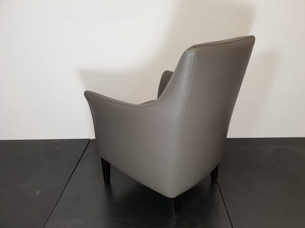 Fauteuil Dunja met lage en hoge rug in leer W4 en contrastbies - €975 en €995